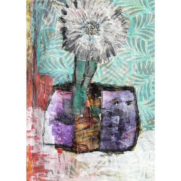 Delicate petals under a quiet winter moon. Flower Snow Moon began as an original mixed-media collage by artist Sara Palacios, created with hand-painted papers and monoprinted tissue papers. Its soft textures and gentle, snowy tones bring a peaceful, poetic touch to any room.